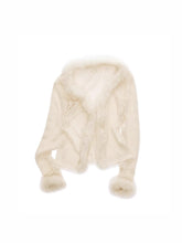 This slim-fit V-neck cardigan is crafted with a fuzzy knit texture and subtle sequin detailing to add soft shimmer and visual depth. Delicate fringe edging at the neckline and hem is paired with lace-trimmed paneling, bringing a romantic touch to a classic silhouette. The lightweight, breathable knit offers a slightly sheer finish that feels airy yet refined. Designed as an effortless layering piece, it elevates everyday spring styling with a balance of comfort, texture, and understated sparkle.