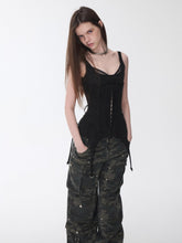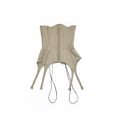 This suede corset belt features three-dimensional panel cutting that closely follows the waist and abdomen to create a sharp, sculpted proportion. Functional garter-style straps blend with an adjustable lace-up back, allowing you to customize the fit and layer it over different tops or dresses. The front placket is finished with hook details, offering multiple styling options from statement outerwear accent to party-ready waist cincher. Made from matte faux suede paired with metal hardware, it delivers a strong vintage street attitude while keeping the silhouette clean and flattering.