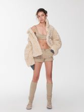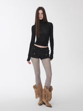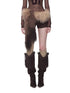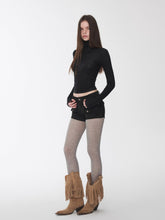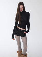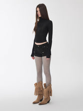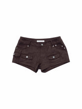 These low-rise bodycon shorts are cut in a sculpting silhouette that hugs the hips and visually lengthens the legs. Asymmetric cargo-style pockets and metal stud details add structure and depth, giving a bold, vintage-inspired look from every angle. The soft matte suede-effect fabric feels smooth against the skin while holding its shape, making them easy to dress up with boots and tights for autumn–winter nights out or styled casually with oversized knits.
