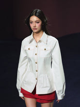 A structured vintage-inspired jacket defined by contrast red stitching that highlights its tailored lines and utilitarian pockets. The cropped cut subtly cinches the waist, balancing practicality and style for everyday wear. Made from a breathable cotton blend with a touch of stretch for comfort, it pairs effortlessly with denim or skirts to create a relaxed yet refined silhouette.