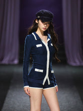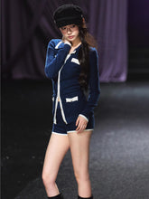 This two-piece set pairs a refined quilted knit top with high-waist tailored shorts, blending retro tweed texture with a feminine silhouette. The soft-touch fabric offers moderate thickness for seasonal transitions, while the detailed rib stitching and fitted shape enhance the waistline. Designed to balance comfort and structure, it’s an elegant choice for everyday wear or city outings.