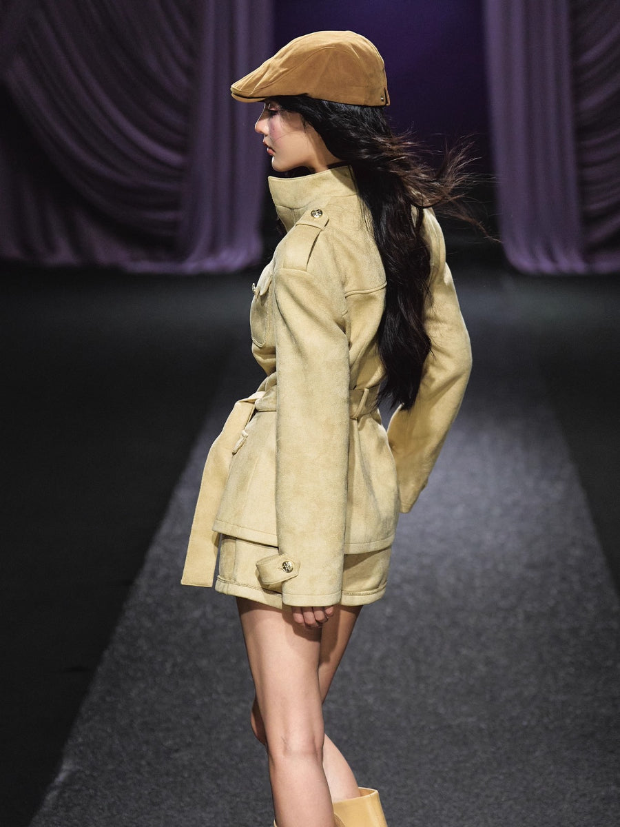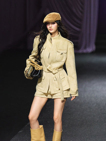 Velvet Suede Jacket & Shorts Two-Piece Set