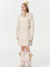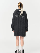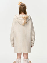 This thick stripe knit sweater dress by 13DE MARZO offers a cozy, casual yet stylish look. Featuring a thick ribbed knit design and playful hood embellishments, this sweater dress is perfect for keeping warm during the cooler seasons. The medium-length design and detailed ribbed finish add a touch of sophistication and comfort.