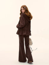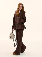 This two-piece set features a padded hoodie and matching pants made with bonded fabric construction to enhance warmth and structure. The hoodie is designed with a drawstring waist that creates a subtle bubble silhouette, balancing volume and shape. The pants adopt a curved-leg cut with a relaxed fit, offering comfort while visually softening the leg line. Brushed inner layers add insulation without bulk, making the set suitable for everyday wear in cooler seasons.