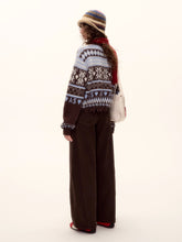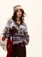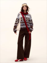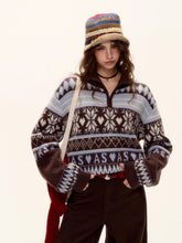 This half-zip pullover sweater features a retro-inspired Fair Isle pattern in warm tones, blending classic winter style with contemporary charm. Crafted from a soft wool-blend knit, it offers warmth, comfort, and structure without losing its shape. The collared neckline and fringe-trimmed hem add vintage character and texture, while the relaxed silhouette flatters different body types. Perfect for cozy winter styling, this piece transitions easily between casual outings and polished looks.