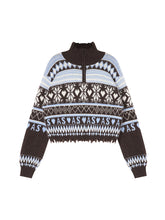 Fair Isle Half-Zip Fringed Knit Sweater