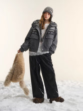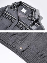 This hooded down jacket features a wool-blend base combined with Fair Isle–inspired patterned panels for a distinctive vintage look. Filled with 90% white duck down, it offers excellent insulation and warmth retention across cold-weather conditions. The oversized silhouette with dropped shoulders provides comfortable layering and a relaxed structure, while the integrated hood enhances wind protection. Thoughtfully designed front pockets support both side-insert and top-access use, balancing practicality with everyday wearability.
