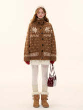 This wool-blend knit cardigan features a classic Fair Isle snowflake jacquard pattern with a relaxed, oversized silhouette for effortless layering. The textured knit delivers warmth while remaining soft and breathable, making it ideal for cooler seasons. Designed with a front-open style, it offers versatile styling for both casual and cozy looks. Ribbed trims enhance structure while maintaining comfort for everyday wear.