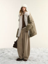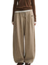 These fleece-lined sweatpants are made from a soft brushed knit that balances warmth, breathability, and everyday comfort. The curved “scimitar” leg cut visually elongates the legs while naturally softening the thigh area, creating a relaxed yet refined silhouette. Designed with a drawstring waist and loose fit, they allow easy adjustment and comfortable layering for autumn and winter wear. Subtle texture and minimal detailing elevate the look beyond basic loungewear, making them suitable for both indoor and casual outdoor styling.