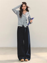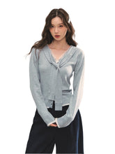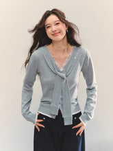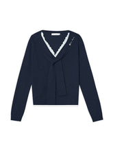 Soft micro-stretch knit resists wrinkling and deformation for comfy, pill-resistant wear. Cropped, slim silhouette channels a preppy vibe; the classic V-neck visually elongates the neckline and highlights the collarbone. Faux two-piece shoulder scarf adds easy layers and styling flexibility. Lace splicing at the neckline brings delicate romance without revealing skin—polished yet sweet.