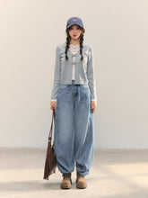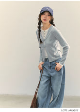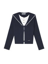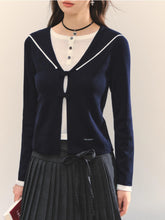 Product Name: Navy Blue & Gray Sailor-Bow Knit Cardigan