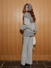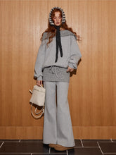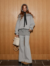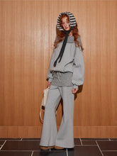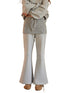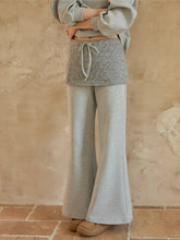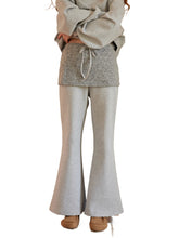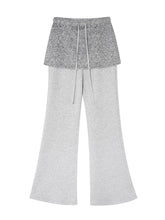 The flared pants elongate the legs, while the layered hem detail adds a relaxed street vibe.