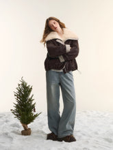 Plaid Faux Fur Collar Down Jacket