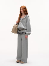 This two-piece set blends casual comfort with stylish retro-inspired details. The oversized sweatshirt is crafted from soft cotton-blend fabric with plaid patch embroidery, offering warmth and durability for daily wear. Its dropped-shoulder silhouette ensures a relaxed fit, while the “ASGONY” chest embroidery adds a distinctive touch. The matching pants feature a ruffled waistband with plaid patchwork accents, combining playfulness with practicality. Together, the set delivers a youthful, modern streetwear aesthetic that balances comfort and individuality.