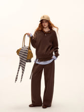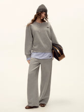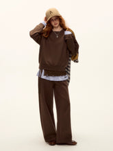 Soft cotton-rich jersey forms the base, balanced with a touch of polyester and spandex for comfort; sleeve plaid panels add a crisp, collegiate accent while the knit drop-hem detail creates a light layered look. The round-neck sweatshirt pairs with curved-seam sweatpants for a coordinated, casual silhouette that reads tidy and put-together. Easy to style for campus, travel, or weekend errands, the set delivers relaxed structure that flatters without bulk. Practical finishing focuses on everyday wearability and warmth.