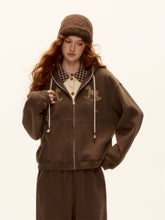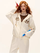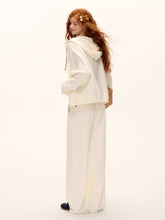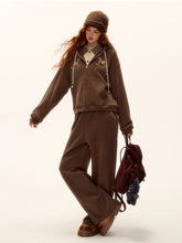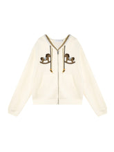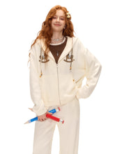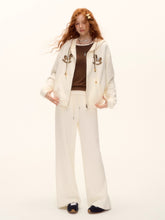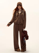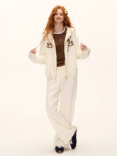 Playful hoodie-and-wide-leg sweat set featuring small pony embroidery accented by seed beads. The cotton-rich loopback knit feels soft yet structured and keeps its shape for everyday wear. A relaxed top balances a cinched waist pant for an easy, flattering “up top relaxed, down below streamlined” silhouette. Practical details—drawcord hood, rib trims, and roomy fit—make it an easy campus-to-errands uniform.