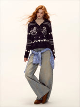 A cozy jacquard knit rendered in a pony motif, blending soft handfeel with a structured polo collar and clean rib trims. The relaxed, slightly thick build drapes comfortably while keeping warmth for everyday wear. Versatile with denim or tailoring, it gives an easy retro vibe without bulk. Functional details—stable shoulder line and tidy hem—help it hold shape through repeated wear.