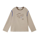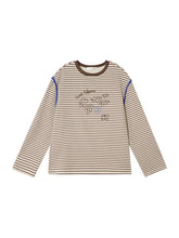 This soft striped T-shirt is made from a breathable cotton-viscose blend, offering a gentle touch and lasting comfort. The subtle texture and shell embroidery add a refined yet playful touch, perfect for casual layering across seasons. Its relaxed silhouette with dropped shoulders enhances the laid-back, effortless feel, while the tonal stripe pattern brings a touch of visual depth. Designed to maintain its shape and softness after multiple washes, this piece pairs easily with denim, skirts, or tailored trousers for a polished everyday look.