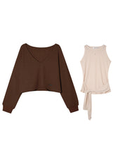 This three-piece set features a cozy waffle-knit pullover, a tie-up vest, and relaxed wide-leg pants, blending comfort and sophistication in one effortless look. The textured knit offers a soft, breathable feel with a structured drape that flatters the body. The adjustable waist ties enhance definition, while the pants’ elastic waistband ensures comfort and flexibility. Perfect for layering or lounging, this versatile ensemble transitions seamlessly from casual daytime wear to elevated travel styling.