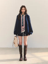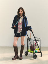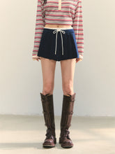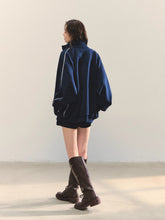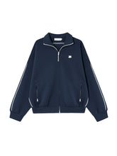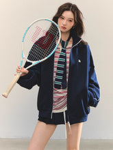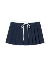 Soft, skin-friendly knit with gentle stretch; comfortable against the skin and resistant to deformation. Relaxed zip-up sweatshirt drapes easily without clinging—casual yet neat. Pleated skort sits at the waist to lift proportions and lengthen the legs; adjustable drawcord at the waist for a flexible fit. Stand collar refines the neckline; dual zippers allow easy on/off and adjustable venting. White contrast piping on the collar and side seams breaks up solids for a distinctive sporty-preppy look.