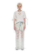1 Jinn Studio,Black & Blue Lace Panel Denim Maxi Skirt