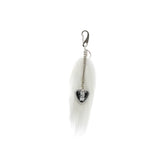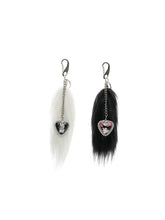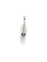 This cat tail keychain features a charming design with custom black and white dog heart-shaped metal accessories. The edges are adorned with scattered pearls, adding a touch of elegance and refinement to the overall look. Perfect for adding a playful and sophisticated touch to your keys or bags, this keychain is a versatile accessory that blends functionality with style.