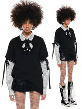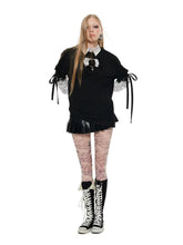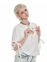 Black & White Heart-shaped Hollow-out Lace-up T-Shirt