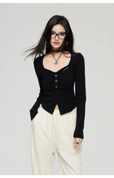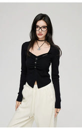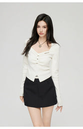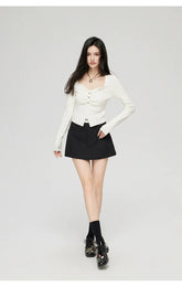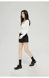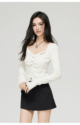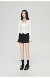 Model: 168cm/44kg, B/W/H:75/56/83, wearing size S.