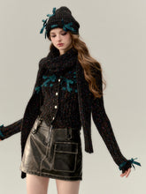 Crafted from a high-quality blend of yarn, this vintage-inspired cardigan set features delicate colored mohair details with a unique blend weaving process. The bowknot embellishments add a playful yet sophisticated touch, while the textured knit and layered colors bring a rich, artisanal feel. Ideal for versatile styling, it combines a relaxed vibe with an intricate, hand-crafted appeal.