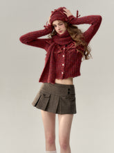 Bowknot Knit Cardigan & Hat & Scarf Set