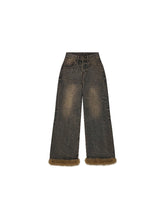 100% cotton denim with a vintage wash gives these jeans a soft hand and lived-in look. Fuzzy hem cuffs add a playful textural contrast to the relaxed, straight silhouette. Easy to style with hoodies, knits, or boots for campus days, coffee runs, and travel. Classic five-pocket setup keeps essentials close while holding shape through everyday wear.