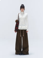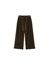 Soft cotton fabric holds a clean drape for a long, relaxed silhouette. Custom leopard-pattern pockets and front pleats add movement and a playful contrast, finished with subtle ruffled trims. Dress them up with a blazer or down with a hoodie for campus, coffee runs, and travel days. Functional side pockets and a comfortable waistband keep daily wear easy.