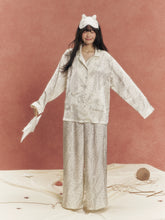 Glossy satin with a fluid drape and soft touch, printed in a chic leopard motif. The long-sleeve button top and relaxed straight-leg pants feel cool on skin for lounging or sleep. Comes with a matching eye mask for a complete wind-down set. Breathable, easy care, and made to mix or wear as a set.