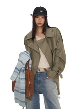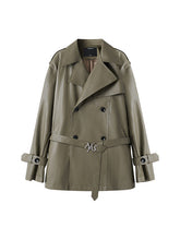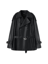Stylish mid-length PU trench coat with a retro British design. Features a wide lapel, double-breasted closure, and a detachable belt for versatile styling. Perfect for adding a touch of sophistication to any outfit.