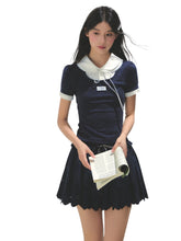 This T - shirt combines a knitted body with a peter - pan collar made of a different fabric. The knitted part offers a soft and stretchy feel, ensuring comfort. The peter - pan collar adds a touch of cuteness and femininity. It's a great choice for a casual yet charming look.