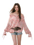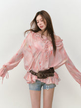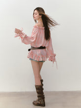 Features an off-the-shoulder cut that freely exposes the shoulder line, and creates a flexible fit through pleated frills.