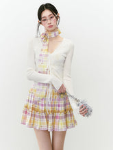 Description: The airy polka dot belt adds a delicate touch to the shape, complemented by a plaid design that enhances the feminine figure with a subtle and playful vibe.