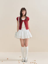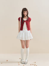 This knitted short-sleeve top uses bright color-block design, where the bright colors burst out the youthful vitality, presenting a perfect combination of vintage and sweetness. The rounded neck and simplified large collar design adds a sense of layering, creating a unique fashion feeling. The external flower-shaped design is finely crafted, and the layers of details not only enhance the visual richness but also emphasize the model's delicate movements and elegance. The contrast of soft pink color and red vintage finish adds a beautiful touch, with two colors for selection.