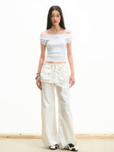 Faux Two-Piece Low-Waist Loose Drawstring Pants