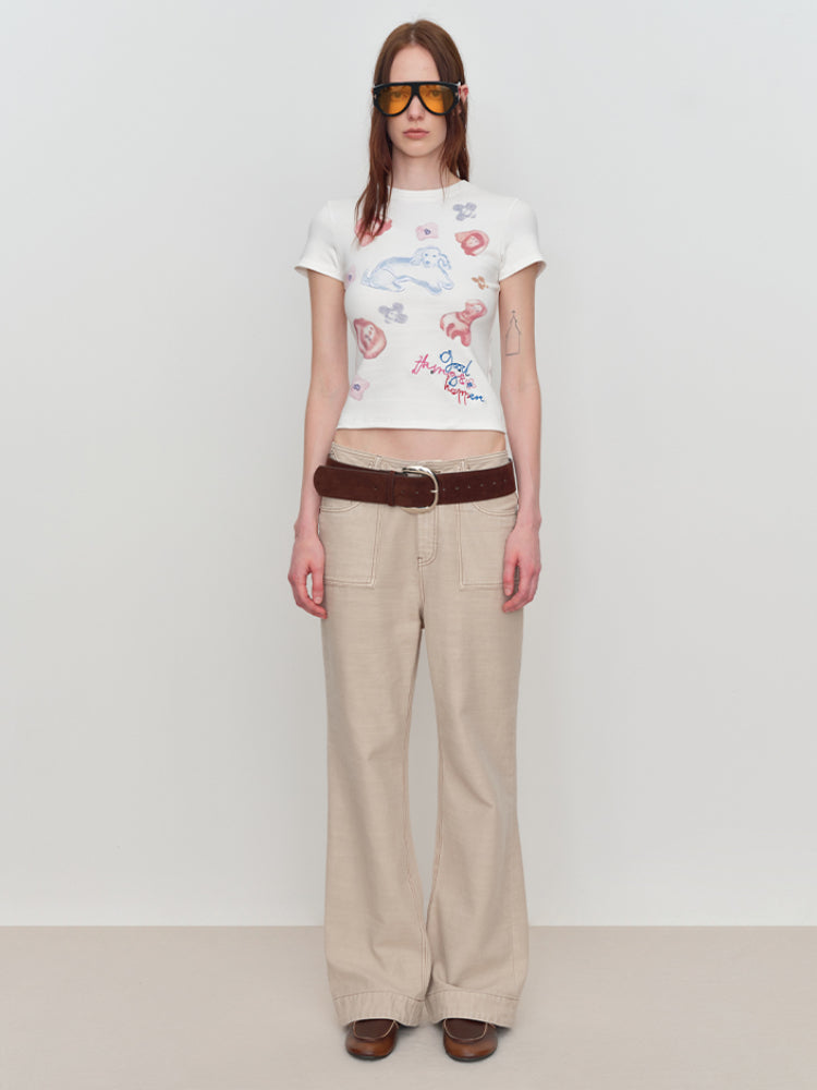 Product Name: Flared Pants with Back Pocket Logo Embroidery