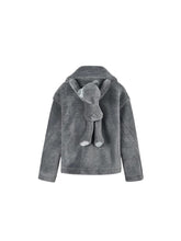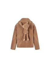 This cozy and fashionable coat from 13DE MARZO features a soft, fuzzy texture with a playful bear detail on the back. It is designed with a thickened, quilted interior for extra warmth, making it perfect for colder seasons. The relaxed, oversized fit ensures comfort and style for any casual outing.