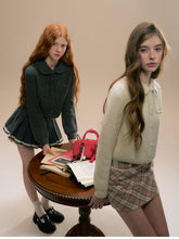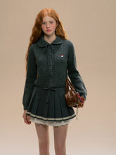 This sweater is made of a wool-blend fabric that is soft, smooth, and comfortable to the touch. The loose fit design ensures it's flattering on various body types. The doll collar design adds a cute and youthful charm. The sleeves feature detailed knitting with ribbed cuffs for warmth and style. A custom-made metal brand tag adds a touch of sophistication.