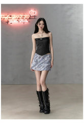 Product Name: Gray & Black Short Bandeau with Bow Strap Tank Top