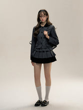 Sunsetpark, Gray Collar Patchwork Striped Blazer