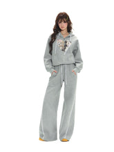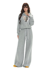 Product Name: Gray Spliced Dog-Print Hoodie & Sweatpants Set