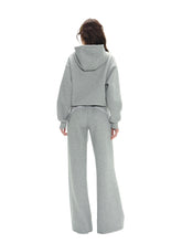 This gray hoodie features contrasting splice panels and a playful dog print, paired with matching relaxed sweatpants for a cozy, lazy-day vibe.