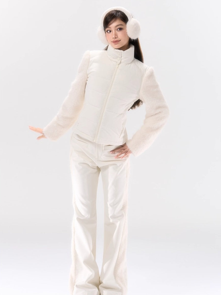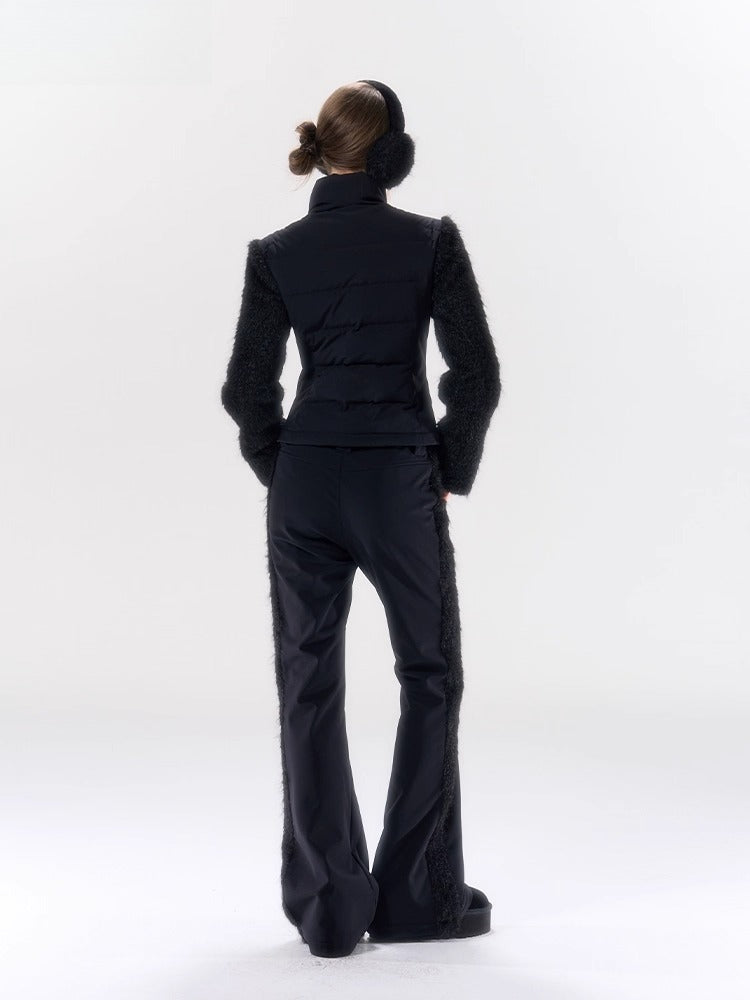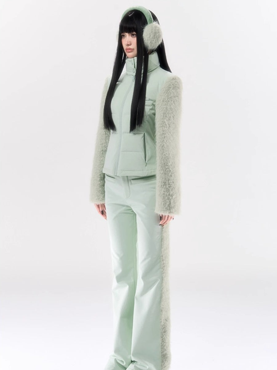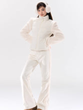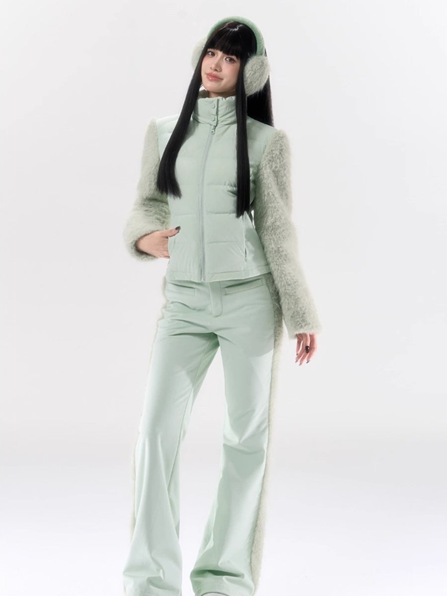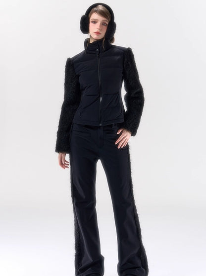 A performance-focused 3-in-1 set designed for light ski and city leisure, combining a windproof, waterproof jacket with straight-leg pants. The shell’s nylon-spandex blend gives flexible movement, while white-duck-down insulation delivers lightweight warmth. Clean quilting, smooth zipper front, and streamlined straight pants create a neat, athletic profile for campus commutes or weekend trips. Fully lined for comfort and engineered for everyday weather protection.