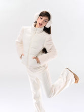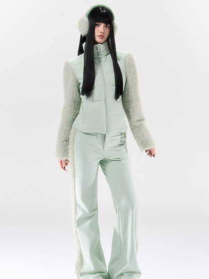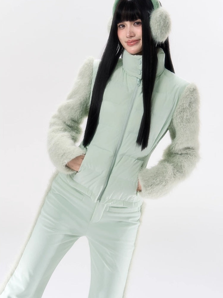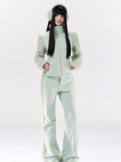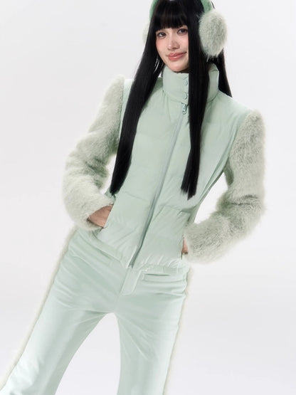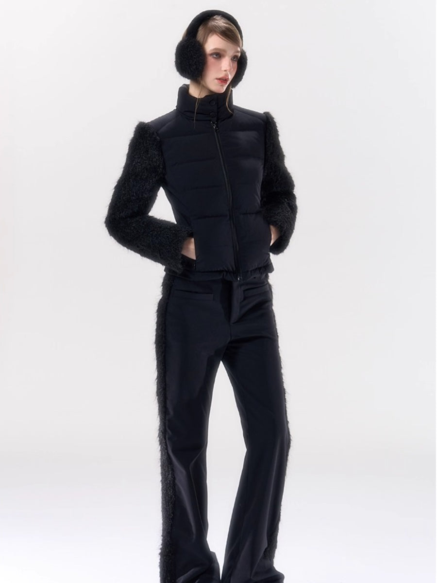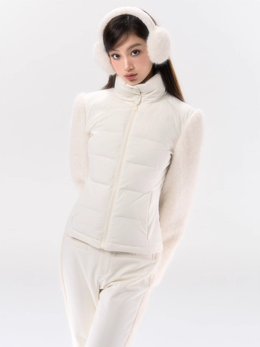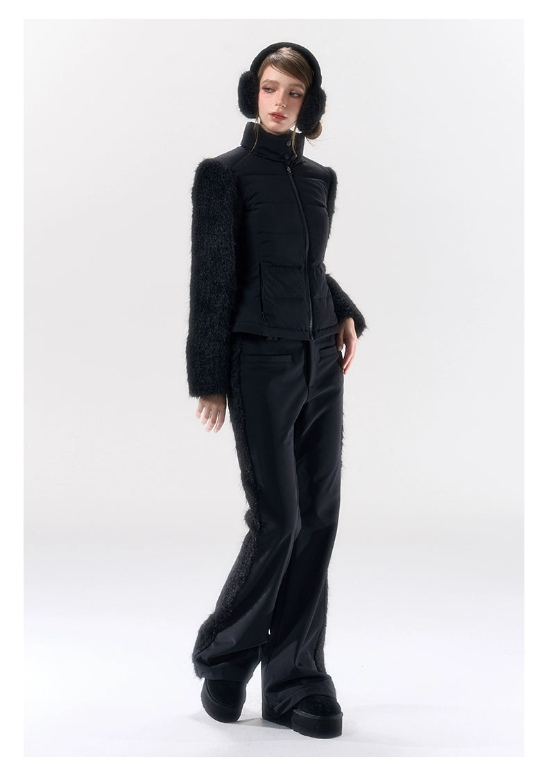 A performance-focused 3-in-1 set designed for light ski and city leisure, combining a windproof, waterproof jacket with straight-leg pants. The shell’s nylon-spandex blend gives flexible movement, while white-duck-down insulation delivers lightweight warmth. Clean quilting, smooth zipper front, and streamlined straight pants create a neat, athletic profile for campus commutes or weekend trips. Fully lined for comfort and engineered for everyday weather protection.