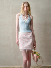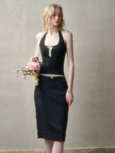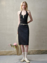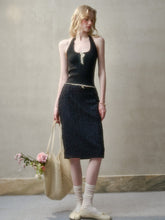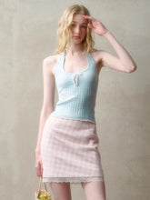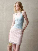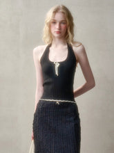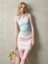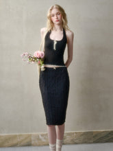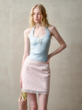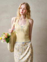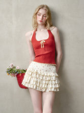 Design: Halter - style collar flatters the face shape and modifies the neck line. The chest is paired with a pure hand - made tie - up bow. Detail: Ribbed hem has good elasticity and is not easy to deform. Hollow - out pattern is breathable and comfortable, and the knitted fabric is soft.