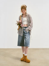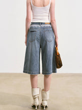 Product Name: Imitation-Lace Printed High-Waist Denim Mid-Length Pants